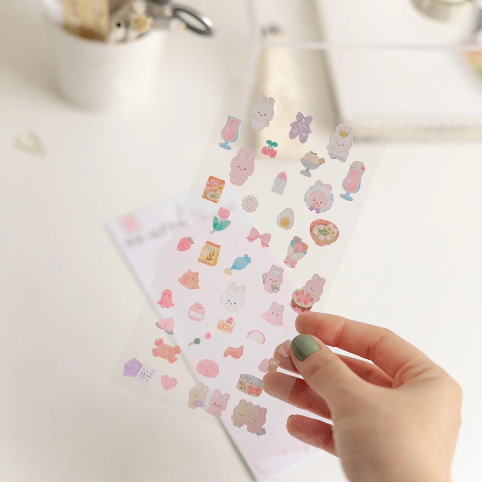 Feitos em material PET, a cartela vem com 41 adesivos ilustrados e super fofos, perfeitos para decorar e trazer mais cores ao seu planner, caderno, cartinhas e o que mais sua criatividade permitir!