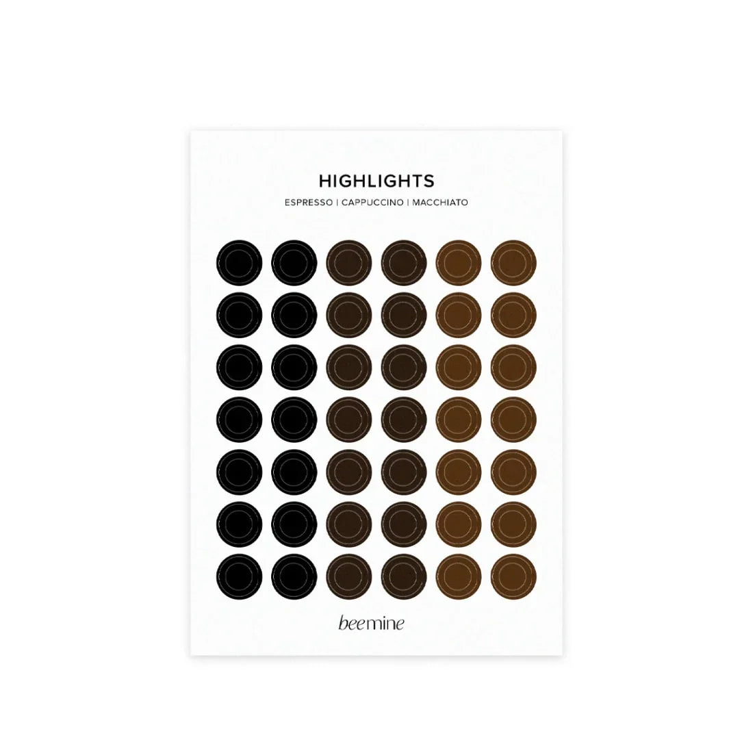 • cada cartela contém 84 stickers (sendo 42 highlights e 42 microdots)