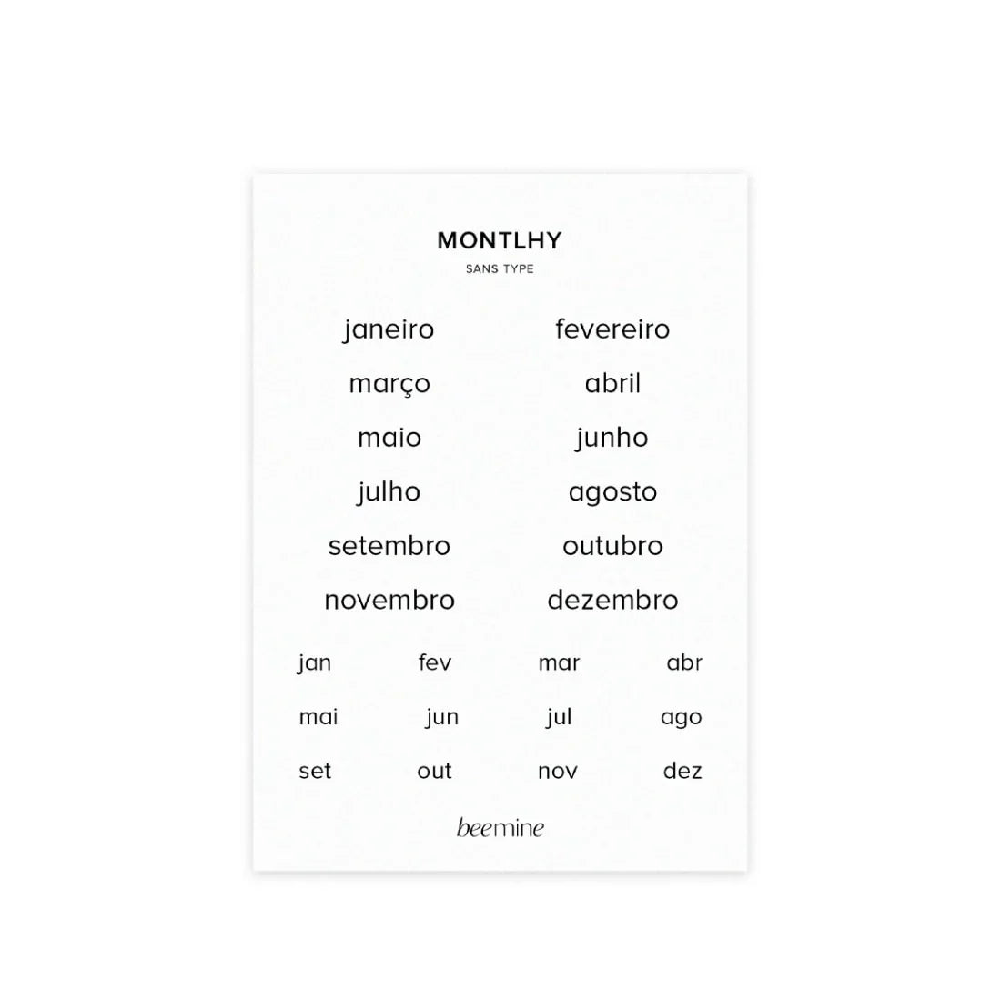 Com os meses por extenso e abreviado, ele fica perfeito quando usado com nossos planners permanentes ou abas divisórias do binder.