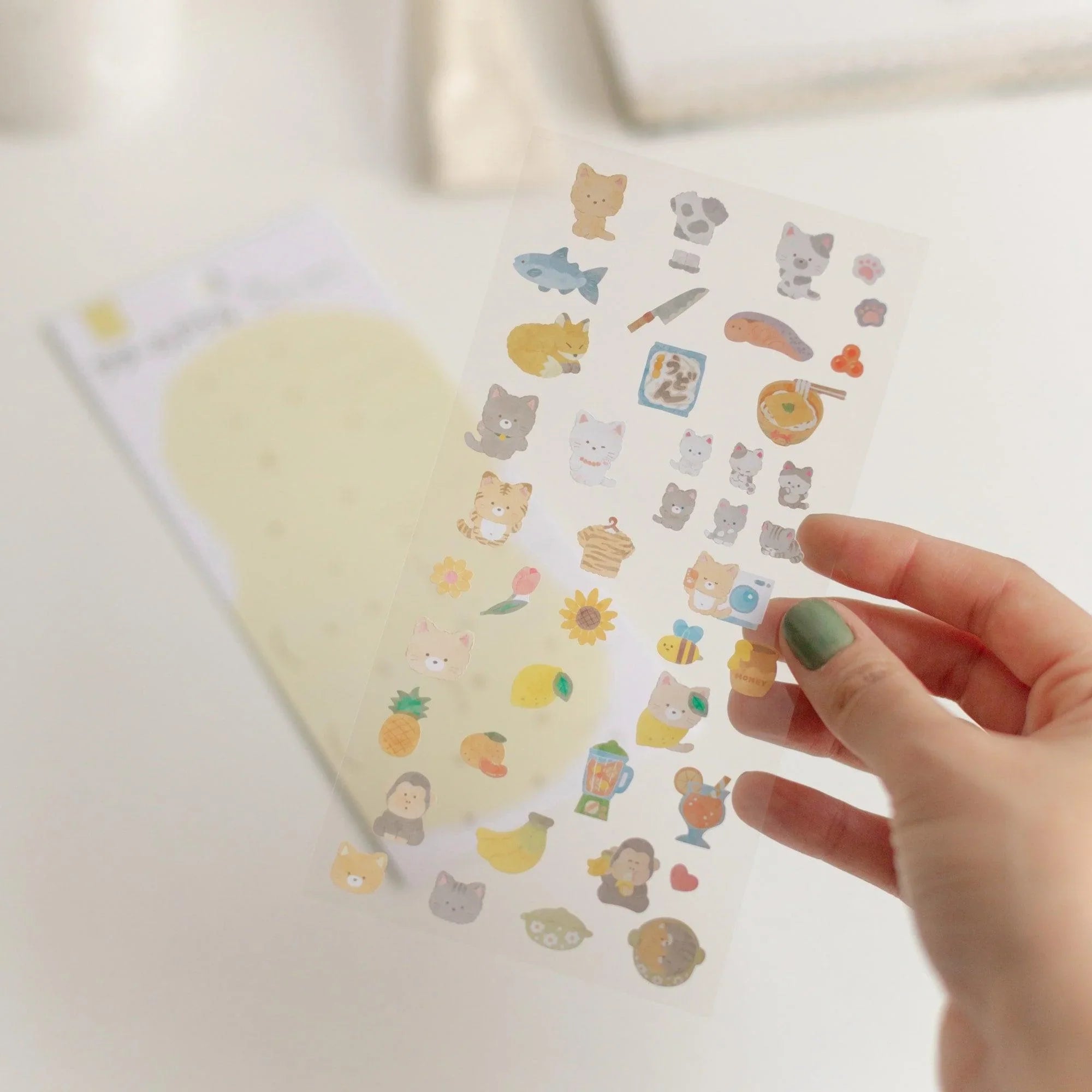 Feitos em material PET, a cartela vem com 44 adesivos ilustrados e super fofos, perfeitos para decorar e trazer mais cores ao seu planner, caderno, cartinhas e o que mais sua criatividade permitir!