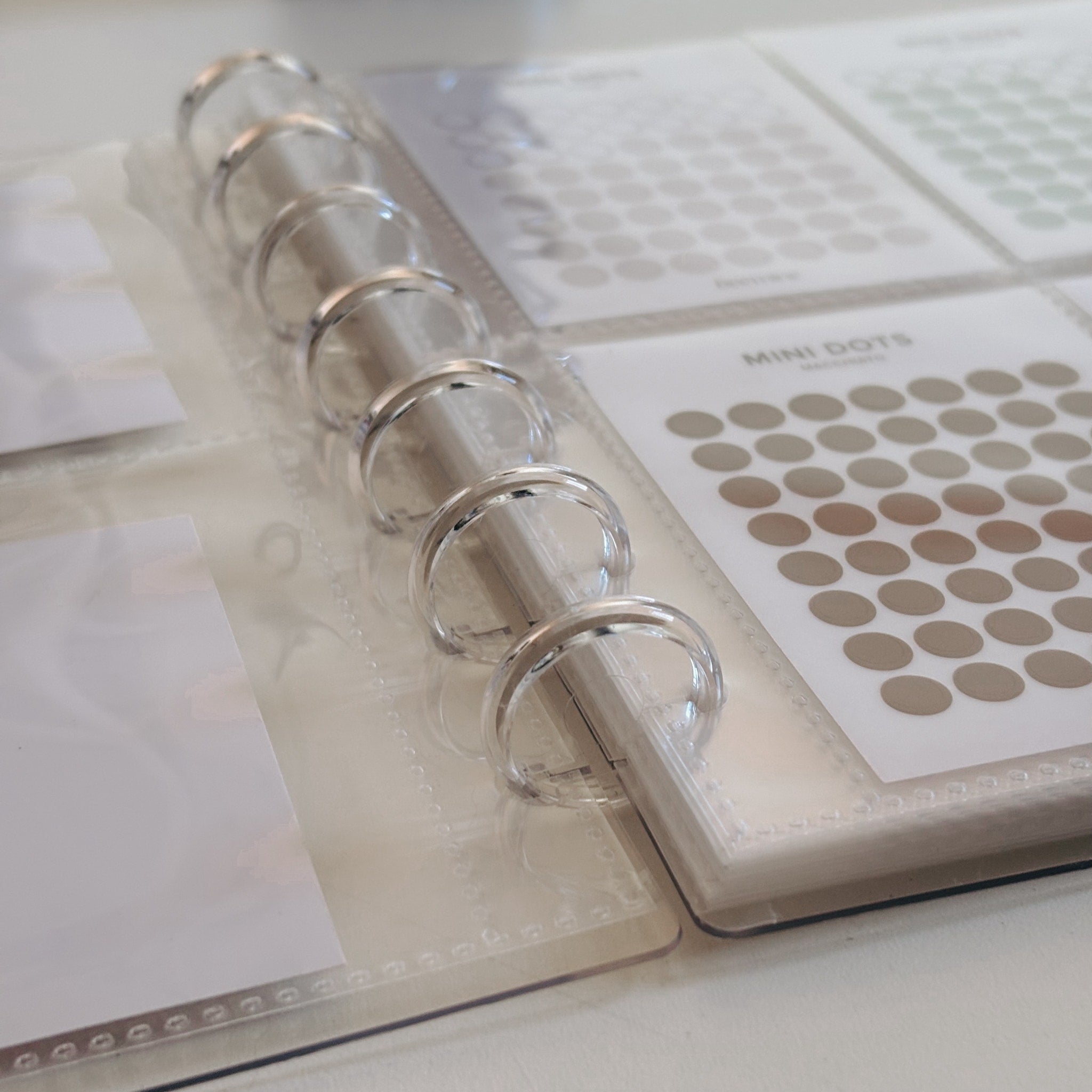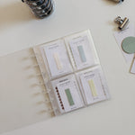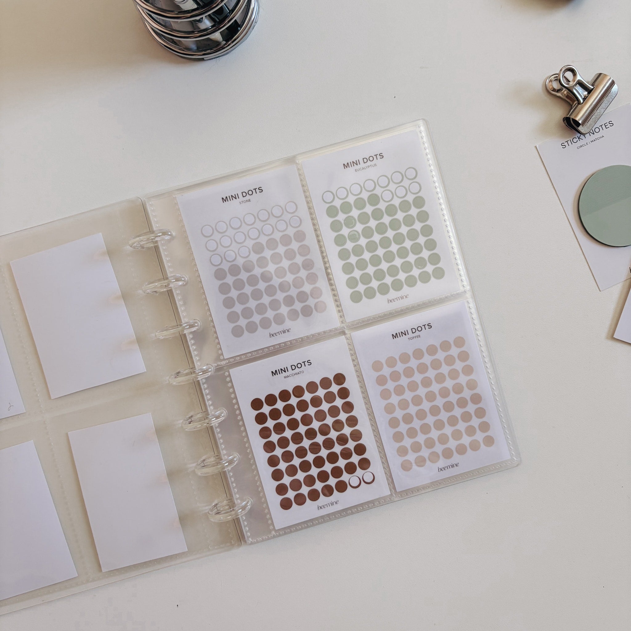 Com ele, você pode organizar sua coleção de mini adesivos da Bee, guardar sticky notes, photocards ou até mesmo criar um álbum de memórias com fotos tamanho instax mini.