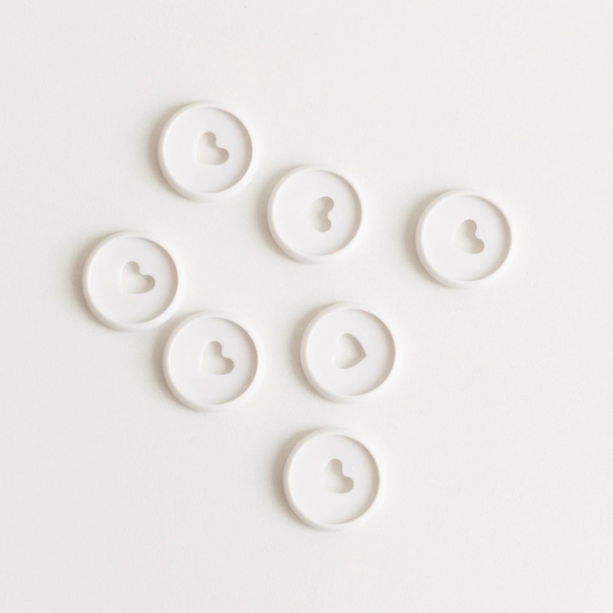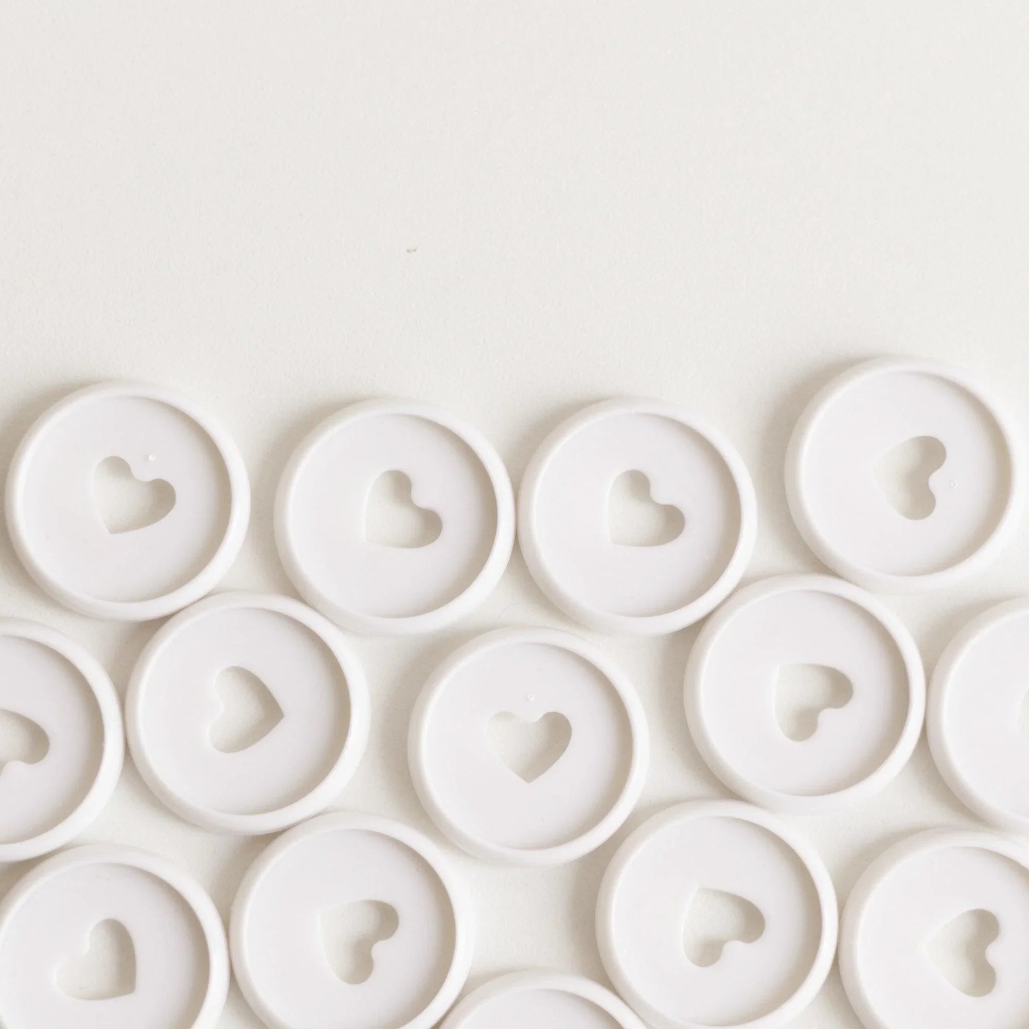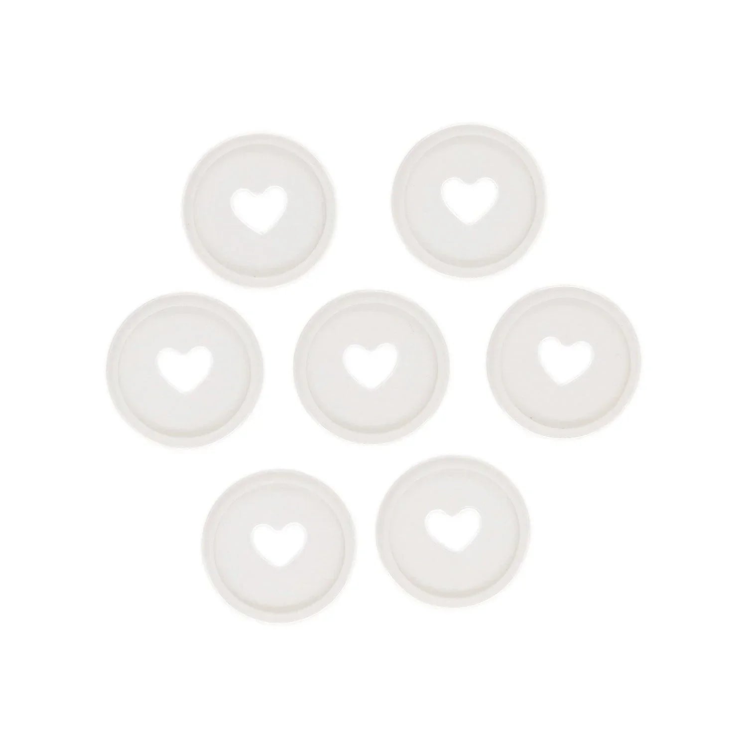 Disponível em 4 cores: branco, preto, transparente e arco-íris, os discos possuem um coração fofo no centro, puro charme!