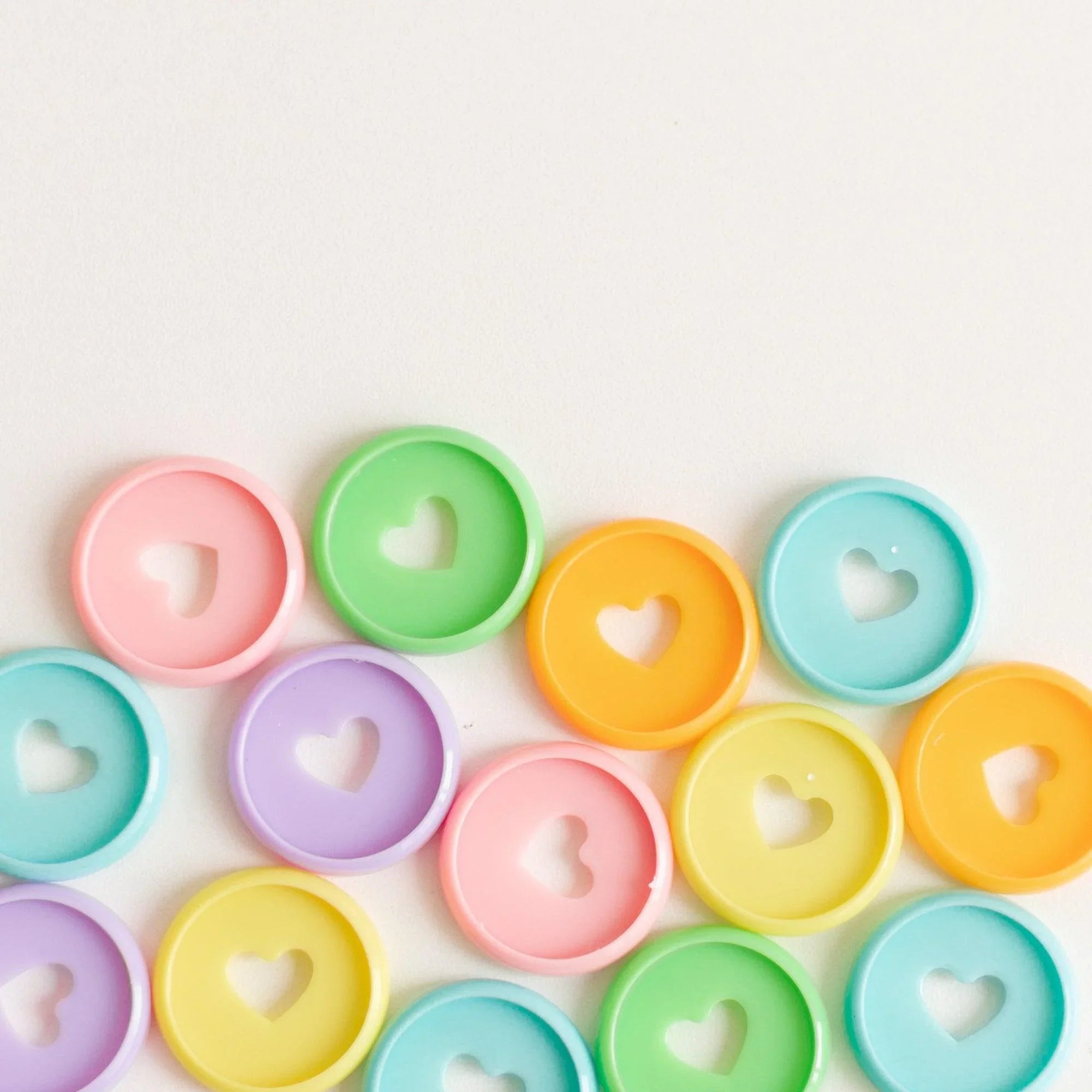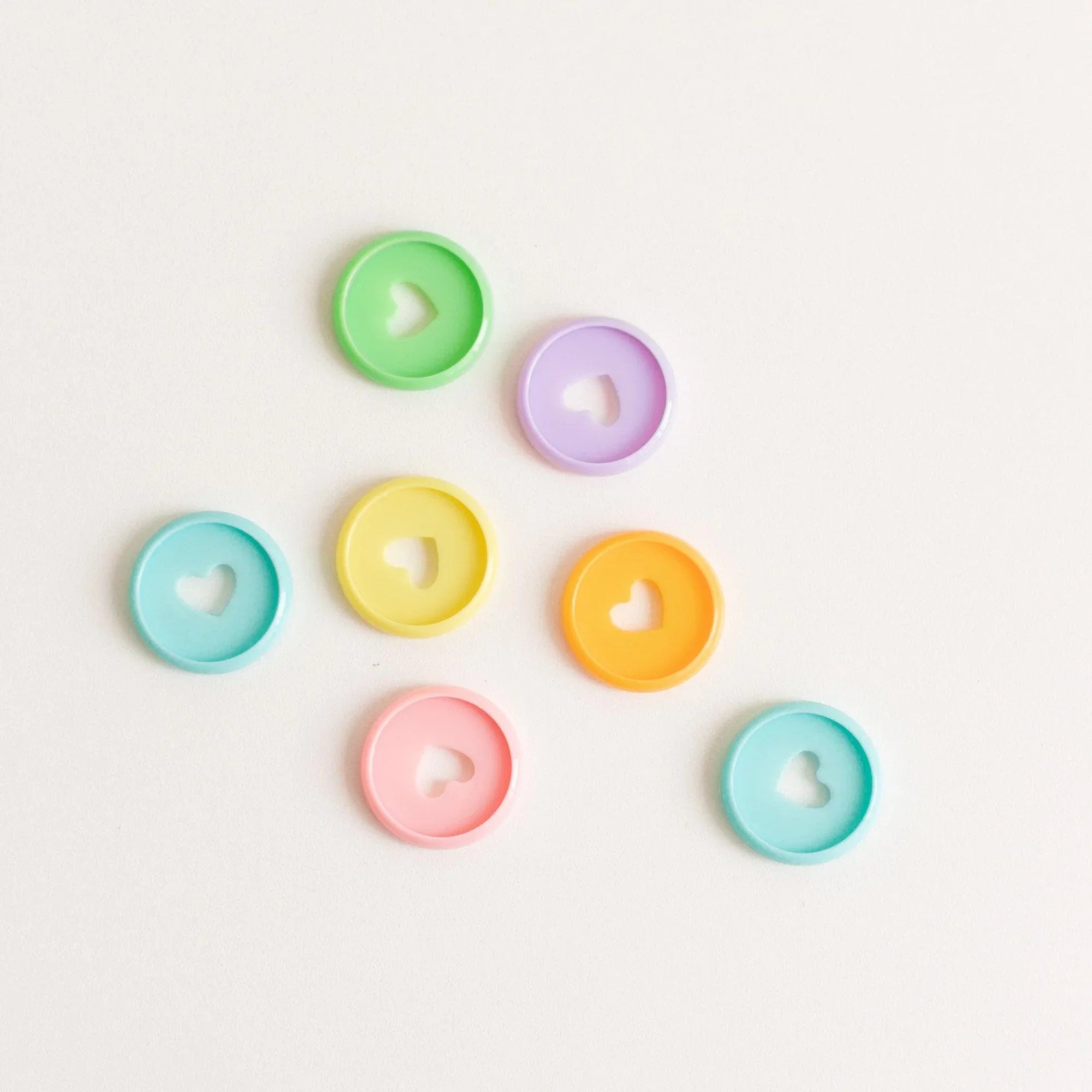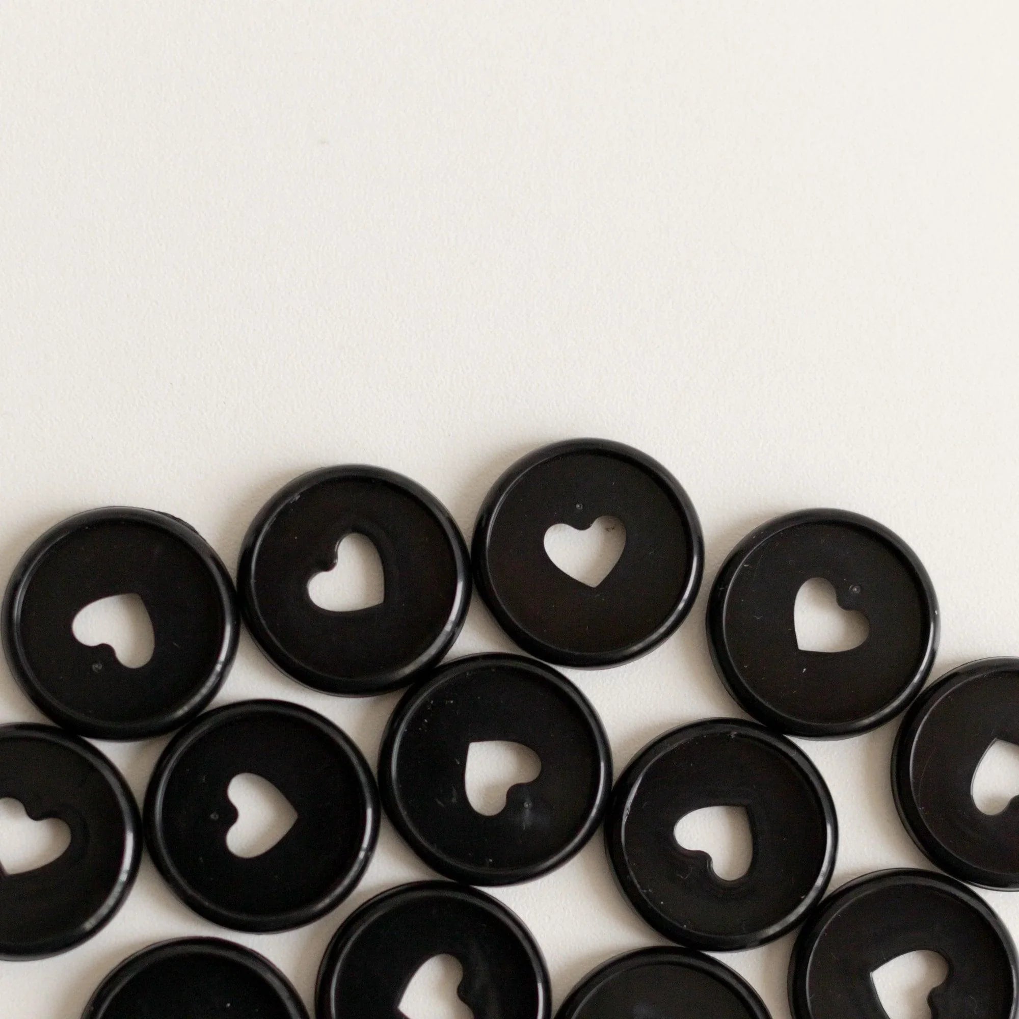 Disponível em 4 cores: branco, preto, transparente e arco-íris, os discos possuem um coração fofo no centro, puro charme!
