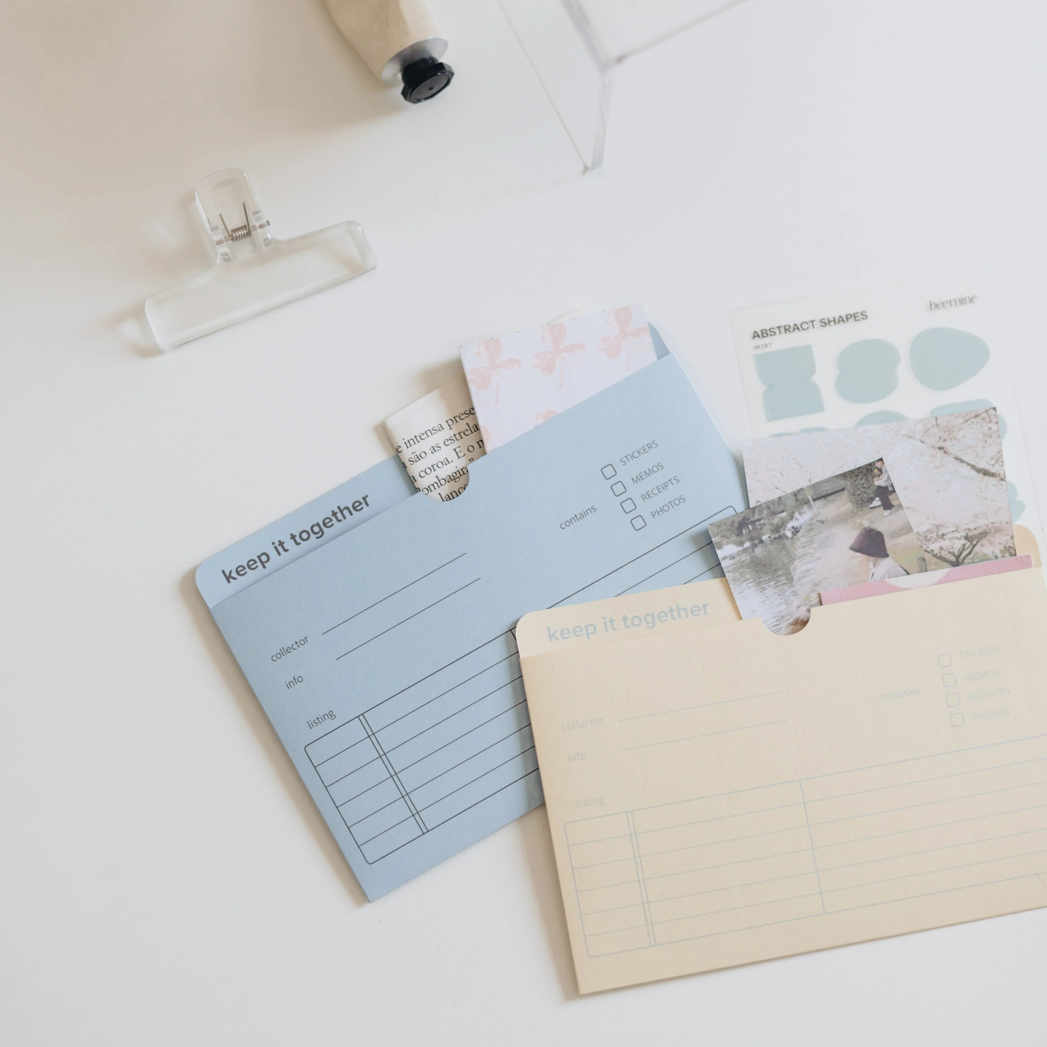 Mantenha suas memórias, papéis e adesivos seguros e organizados com nossa dupla de envelopes Keep it Together.
