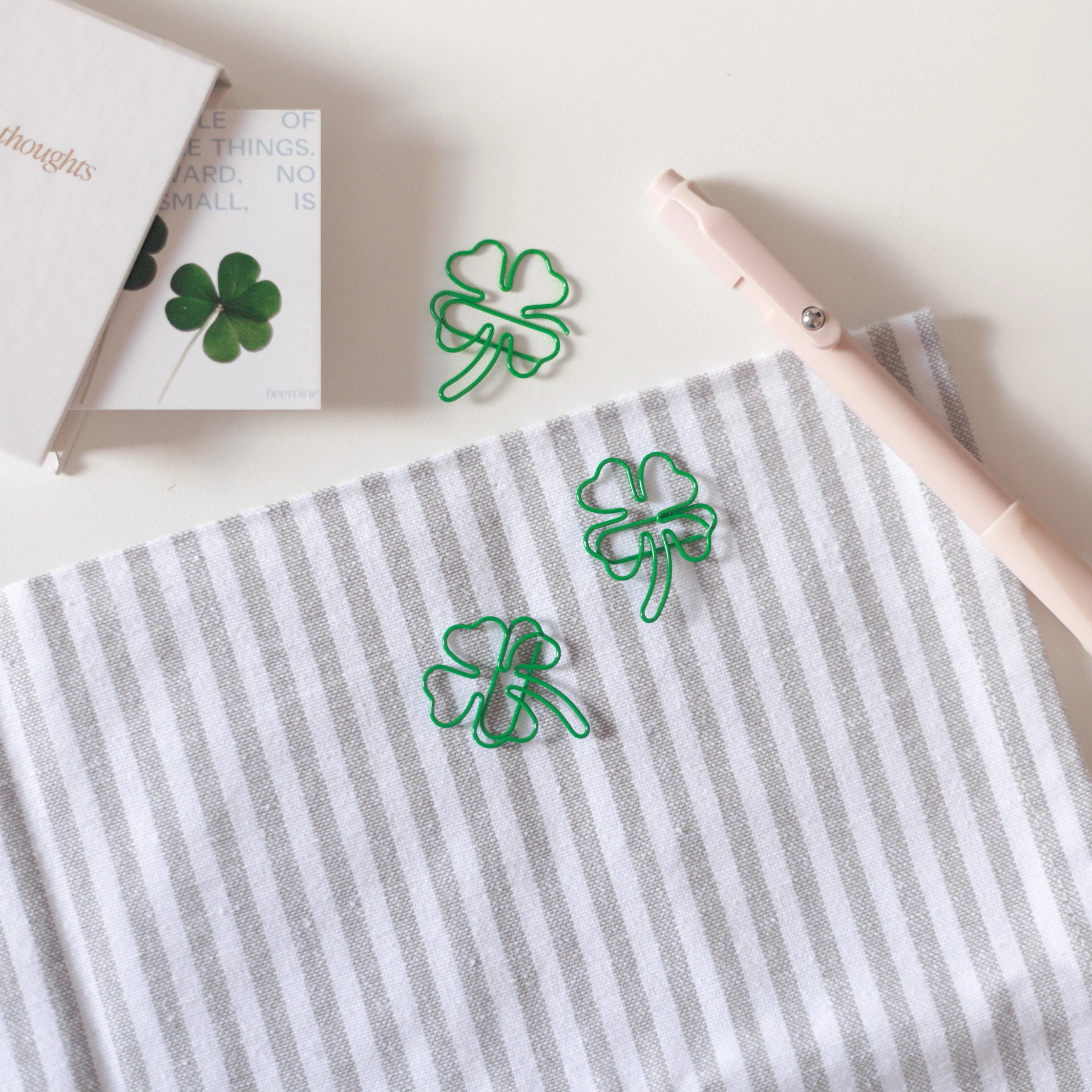 Os clipes em formato de trevo de quatro folhas são ideais para marcar páginas ou decorar suas anotações com charme e personalidade.