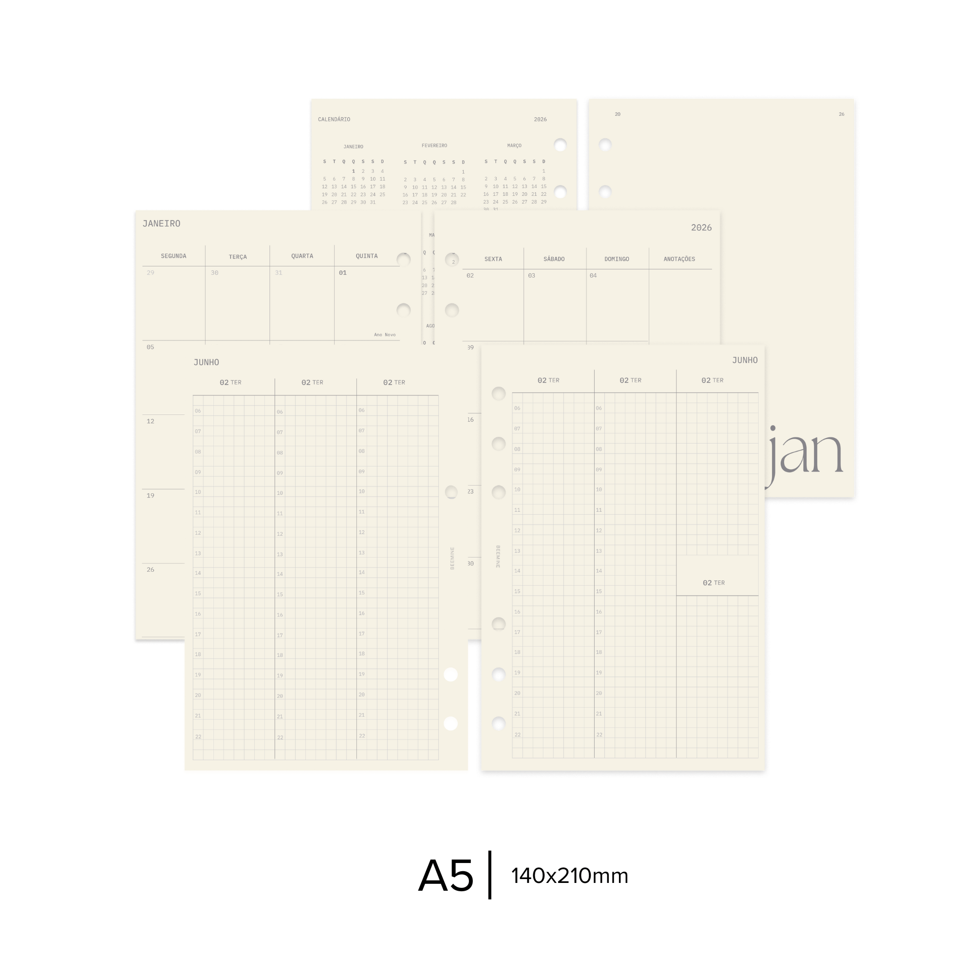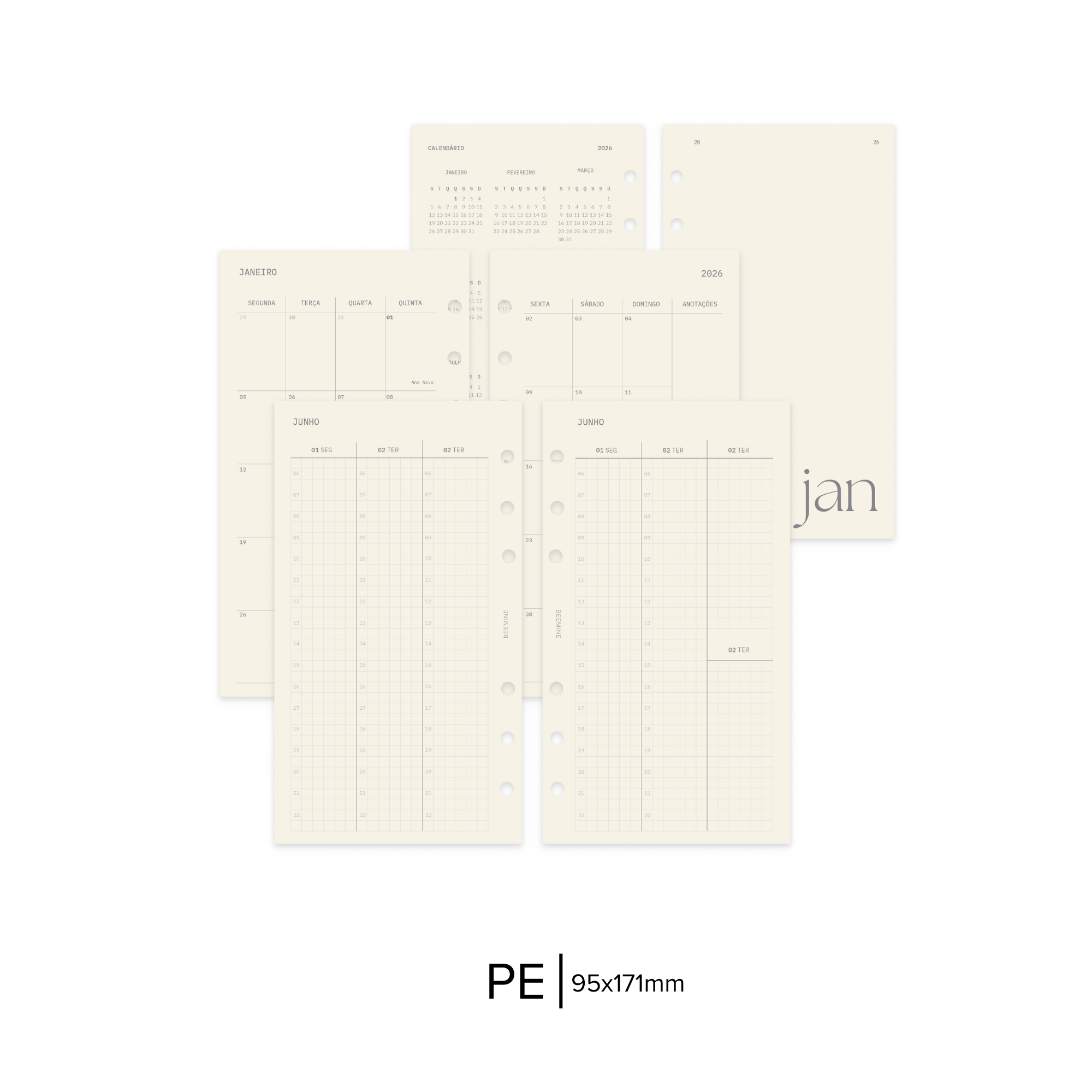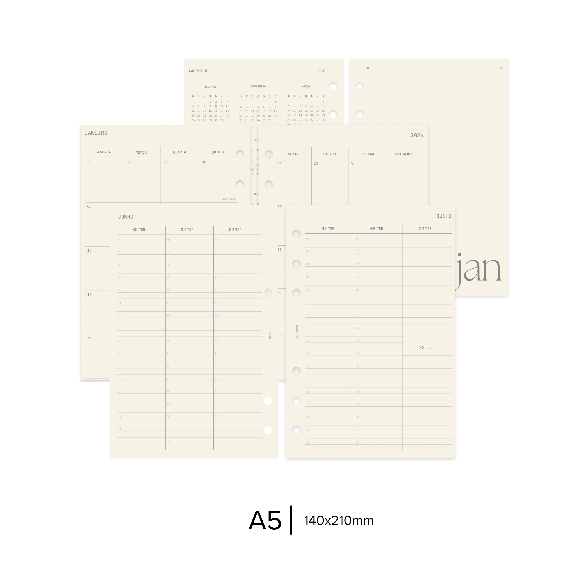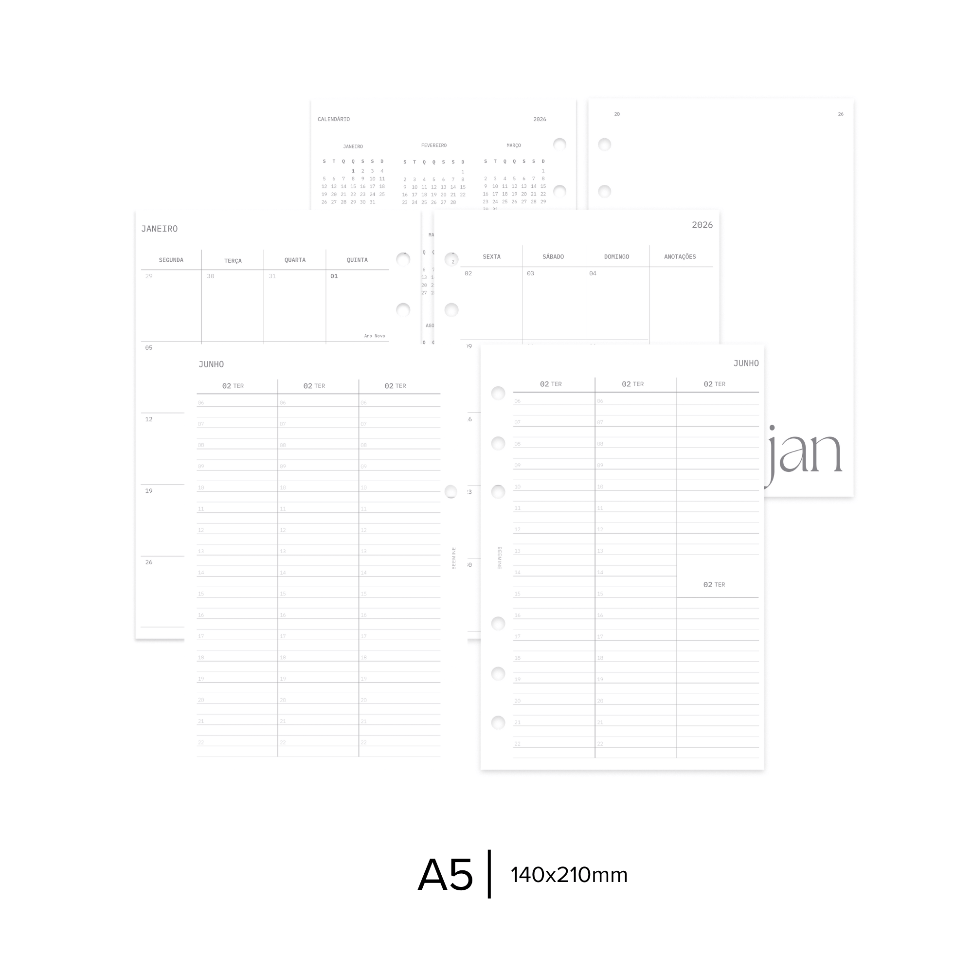O refil datado 2026 foi criado pra te acompanhar ao longo do ano com leveza. Uma ferramenta minimalista que te ajuda a focar no que realmente importa, sem sobrecarregar a rotina.